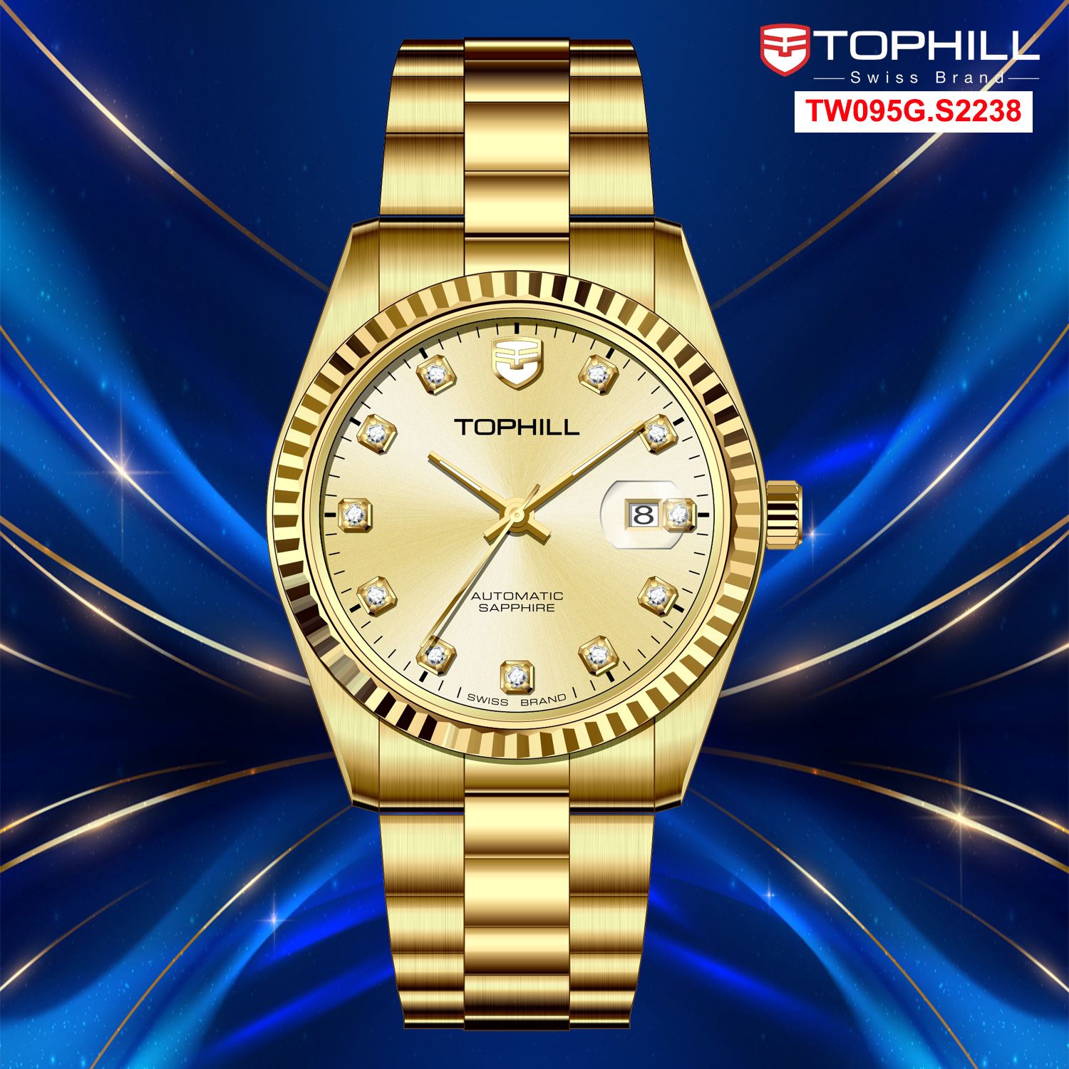 ĐỒNG HỒ TOPHILL TW095G_S2238 Nam dây thép 316L Máy automatic Kính sapphire 5ATM