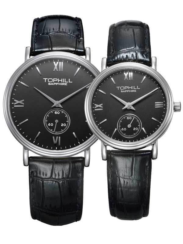 ĐỒNG HỒ TOPHILL TA021G.PB1197 + TA021L.PB1197 Nam+Nữ dây da máy Quartz kính Sapphire 3ATM